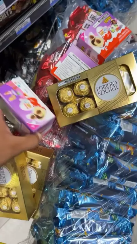 Ela pegou tudo de chocolates no mercado