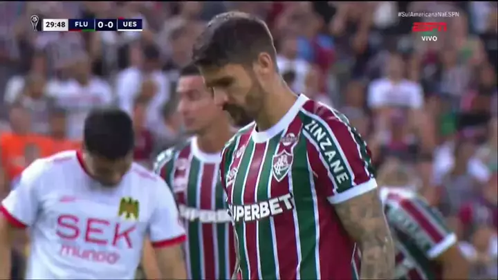 Everaldo desperdiça o pênalti para o Fluminense.