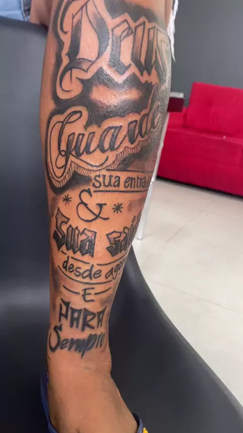 #SegurançapraKwai #tatuagem #frasesdedeus #tattooart #fechamentodeperna amei 🥰 meu primeiro fechamento de perna 🦵
