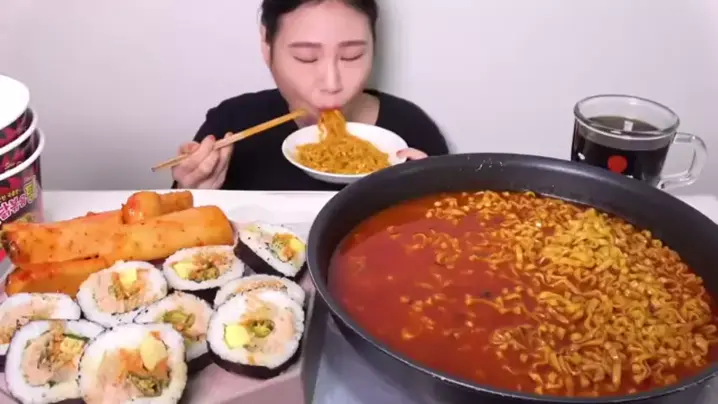 Samyang kuah+kimbab##mukbang#asmr#fran