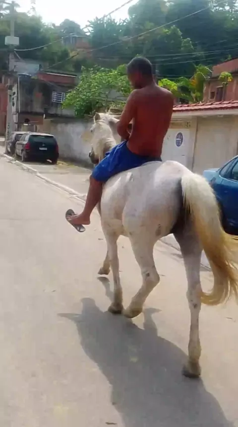 Quem tem égua seria e ele Pe de pato andando sem corda na rua
