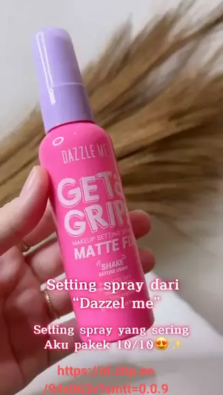"Tingkatkan ketahanan makeup-mu hingga 12 jam dengan Dazzle Me Get a Grip! Setting Spray. Formula ringan dan fine sprinkler head-nya menghasilkan butiran super halus. #DazzleMe #settingspray #GetAGrip #makeup #SHOPEE