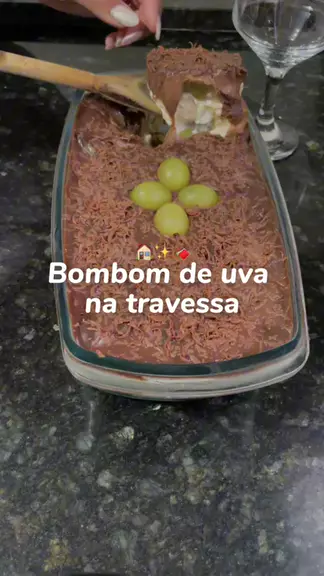 Bombom de uva na travessa π«β¨ π β’ INGREDIENTES β’ (Creme branco) 1 leite condensado 1 creme de leite 3 colheres de leite em pΓ³ (Ganache) 1 barra e 1/2 de chocolate 50% 1 creme de leite Uva a gosto #doce #Receita #chocolate #donadecasa #kwai