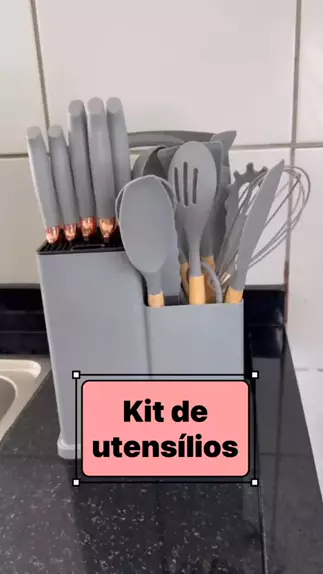 Melhor kit de utensílios do mundo. E o valor ta suuuuper compensando. Vem muitos utensilios de silicone e sem falar que é super chique