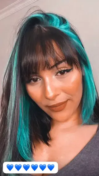 Azul Turquesa é umas das minhas cores favoritas!! 💙 Qual é a cor favorita de vocês ? 👀 - #transformação #cabelo #cabelocolorido #franja #foryou