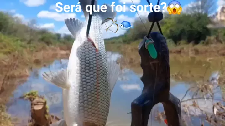 Luan pesca com estilingue 😎🐟