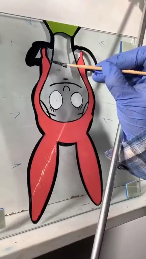 Adicionando cor com tinta esmalte no vidro. # handpainted # brushwork # signpainter # bobsburgers # louise # asmr # process # fy # # # brushstroke # 1shot