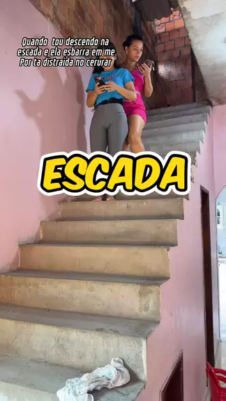 Quando tou descendo na escada e ela esbarra em me Por ta distraida no cerurar