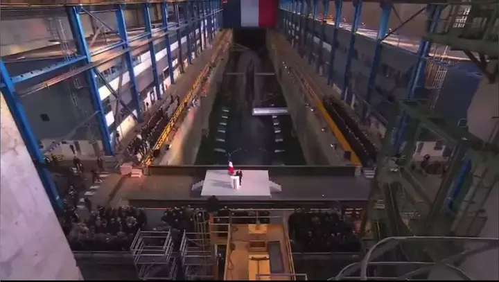 Emmanuel Macron, presidente da França, canta o hino nacional em frente a um submarino carregado de ogivas nucleares. #guerra #terceiraguerramundial #Eua #Geopolitica #mundial