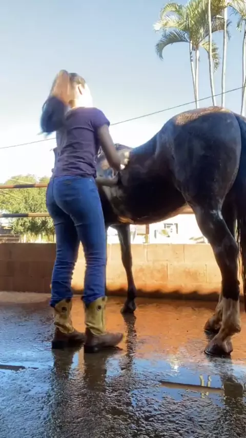 Bianca Seneme Dia de banho na gordinha comigo💦 #rodeio #cavalos #horses #cuidados #coutryn