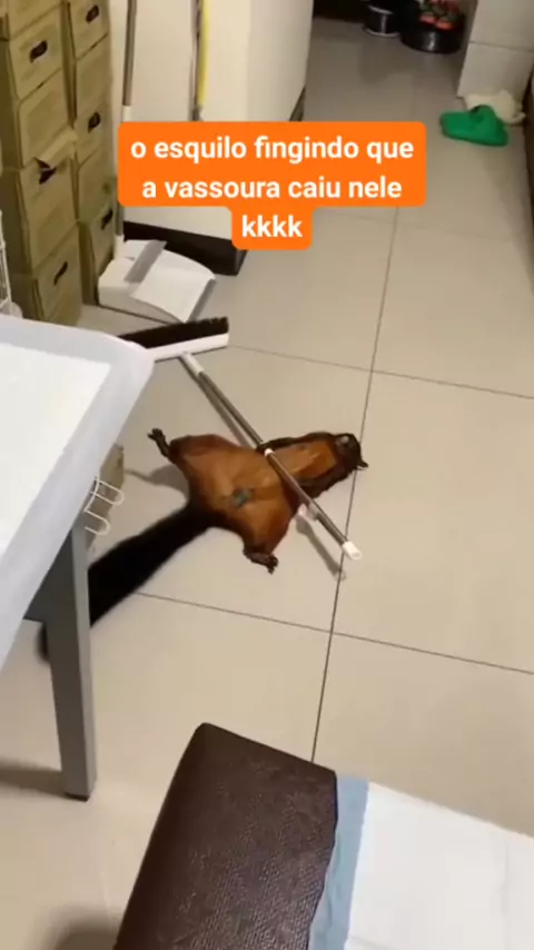O esquilo fingindo que a vassoura caiu nele kkkkk🤣 merece um Oscar👏👏