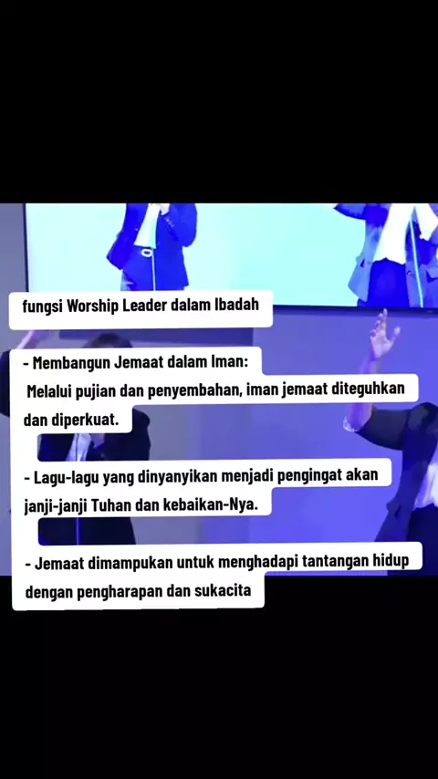 fungsi Worship Leader dalam Ibadah - Membangun Jemaat dalam Iman: Melalui pujian dan penyembahan, iman jemaat diteguhkan dan diperkuat. - Lagu-lagu yang dinyanyikan menjadi pengingat akan janji-janji Tuhan dan kebaikan-Nya. - Jemaat dimampukan untuk menghadapi tantangan hidup dengan pengharapan dan sukacita#worshipleader#worship#pujianpenyembahan#melayanituhan#penyembahan