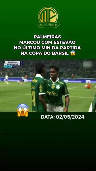 PALMEIRAS MARCOU COM ESTEVÃO NO ÚLTIMO MINUTO E SAIU COM A VITÓRIA. JOGO: Palmeiras X Botafogo SP. DATA: 02/05/2024. #copadobrasil #palmeiras #botafogosp #PalmeirasxBotafogoSP #esporte