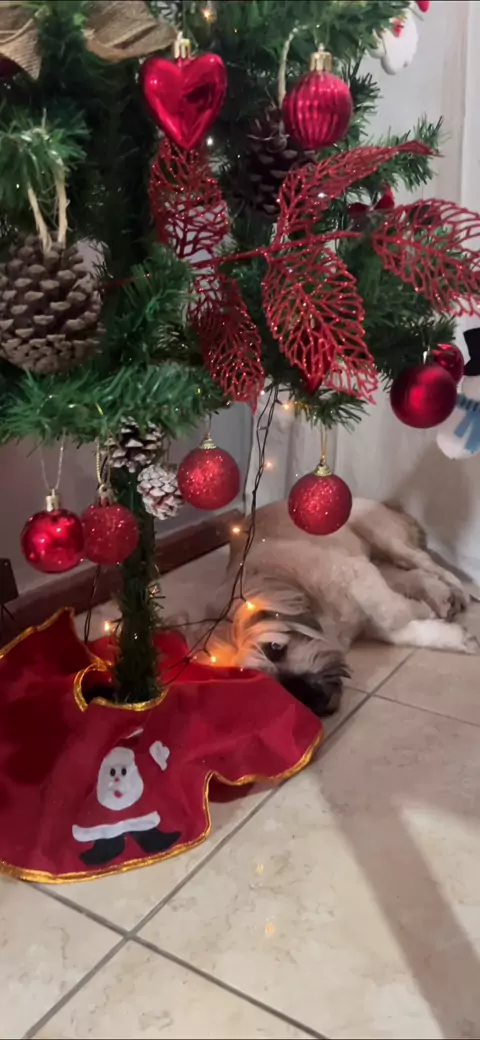 Olha quem gostou da árvore de Natal 🌲 #_Natal👼 #dog #natalina #MeuSonhodeNatal #RetratoNatalino More