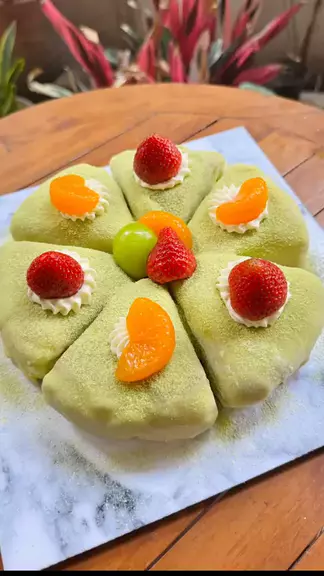 Matcha Mochi Burn Cheese Cake #cheesecake #mochi #menuenakdisnack