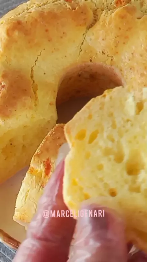 BOLO DE POLVILHO QUE NÃO MURCHA E FICA DELICIOSO Ingredientes: 3 ovos 150ml de leite 100ml de óleo 400g de polvilho azedo 1 colher de chá de sal 40g de queijo parmesão ralado 50 g de mussarela 1 colher de sobremesa de fermento em pó para bolo Forma 20×8
