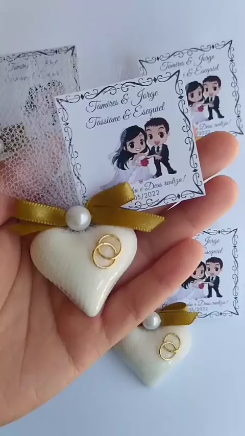 Lembrancinha de Sabonete de Coração com Alianças para Casamentos! #lembrancinhas #saboneteartesanal #lembrancinhadecasamento #casamento #martinslembrancinhas