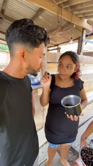 Elas pegaram bacaba pra roer #roça #frutas #videoviral #EstrelaDeFamília
