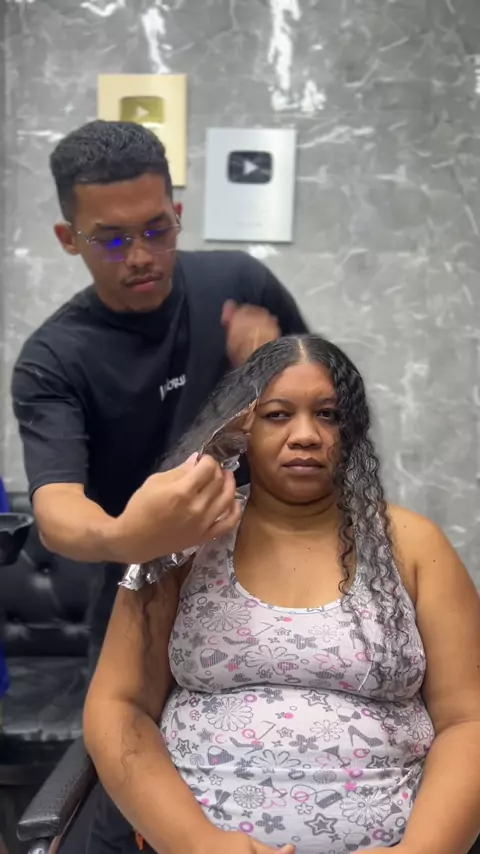 Mechas azul na mãe💙 Corte do Neymar no filho ⚽️ - #cabelo #barbearia #lowfade