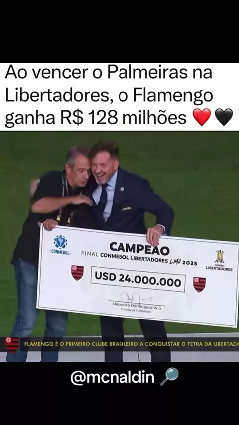 Flamengo é TETRA da Libertadores 2025! 🏆 Com a vitória sobre o Palmeiras a taça valeu — e o clube embolsou US$ 24 milhões (aprox. R$ 128–129 milhões)! 💰💥 Quer saber os detalhes? ⤵️ 🔥 Como o Fla chegou a esse montante: participação, bônus por vitórias, fases eliminatórias + título! ⚽ Final 1×0 — gol de cabeça de Danilo no Monumental de Lima. 📈 Resultado histórico: premiação recorde, taça, e grana na conta. 💡 Se você ama futebol e dinheiro, esse vídeo é pra você. Compartilha, marca os amigo...