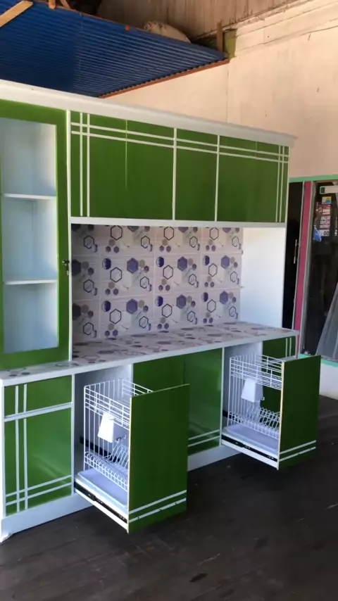 Lemari dapur uk 2 meter free rak piring 2 set Bahan kayu lurus, awet dan tahan lama#lemaridapur#viral##merahputih#merdeka#lemarikayu