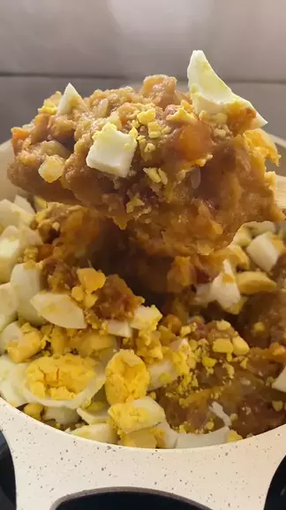 Sobrou feijão? Faça esse tutu de feijão delicioso 😋 #TutuDeFeijão #ReceitaFácil #ComidaMineira” Ingredientes: › 1/2 xícara (chá) de bacon em cubos • 1 gomo de linguiça calabresa em cubos • 1 cebola em cubos • 2 dentes de alho picados • 3 xícaras (chá) de feijão-carioca cozido • 2 xícaras (chá) de caldo do cozimento do feijão • 1 folha de louro › Sal e cheiro-verde picado a gosto • 1/2 xícara (chá) de farinha de mandioca • 2 ovos cozidos picados