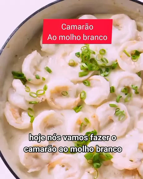 Camarão ao molho branco #camarão #molhobranco #molho ☆Receita • 400g de camarões • 1 caixa de creme de leite • 1 cebola inteira • 2 Dentes de alho • 2 colheres de sopa de trigo • sal • salsa e cebolinha 更多