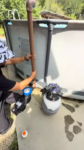 Coloquei filtro de areia e bomba numa piscina estrutural sem precisar furar. #kwaycriador #asmr💦 #piscineiroprofisonal #mestredaspiscinas #piscinalimpa