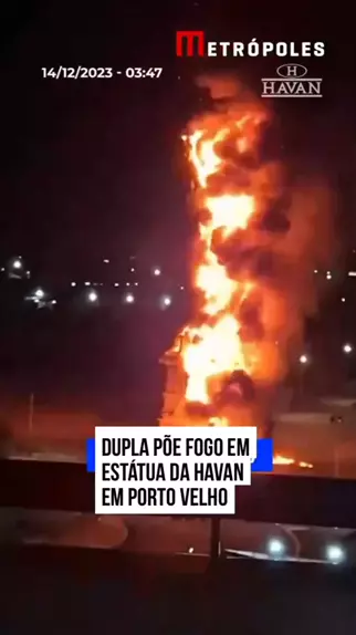 馃敟馃椊 Imagens divulgadas nas redes sociais mostram o momento em que a famosa est谩tua da liberdade de uma loja da #Havan 茅 incendiada por uma dupla. O caso aconteceu em #PortoVelho, Rond么nia. #KwaiNot铆cias