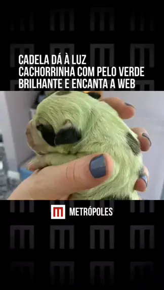 Uma #cadela deu à luz um filhote raríssimo no #Canadá. Fazendo parte de uma ninhada de oito cachorrinhos, o pet nasceu com um pelo #verde brilhante, que deixou muita gente fascinada #KwaiNotícias