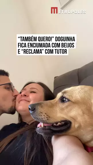 🥰🐶 "E o meu beijo, Cleiton?", foi o que pensou a #doguinha caramelo Phoebe ao ver Lucas demonstrar carinho com a companheira Julia. Na ocasião, a pet acabou ficando com ciúmes e "exigiu" através de sons que também ganhasse beijos. No vídeo, é possível ver que Lucas primeiro #beija Phoebe e depois Julia, mas quando chega na mulher, a doguinha logo reclama como se só ela tivesse o direito de receber as bitocas. #KwaiNotícias 📹 _jubertin (ig) | myhoodbr
