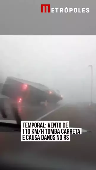 Um #temporal com ventos de até 110 quilômetros por hora (km/h) atingiu o #RioGrandedoSul no fim da tarde e início da noite desta segunda-feira (31/3). Em Porto Alegre, a #DefesaCivil afirma que mobiliza equipe para dar uma resposta aos danos causados pelo fenômeno natural. Um vídeo que circula na internet mostrou uma carreta tombando com a força do vento. #KwaiNotícias 📹 Reprodução
