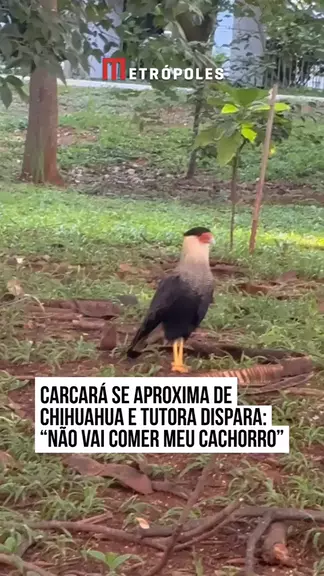 🦅😨 Cena tensa e inusitada em #Brasília! Um vídeo que circula nas redes mostra um #carcará, ave conhecida pela ousadia, se aproximando de Papito, um #chihuahua de apenas 1,5 kg. Nas imagens, o animal observa atentamente, chega cada vez mais perto e parece analisar a situação, deixando o clima de suspense no ar. #KwaiNotícias 🤳 Papito.buen.muchacho | myhoodbr