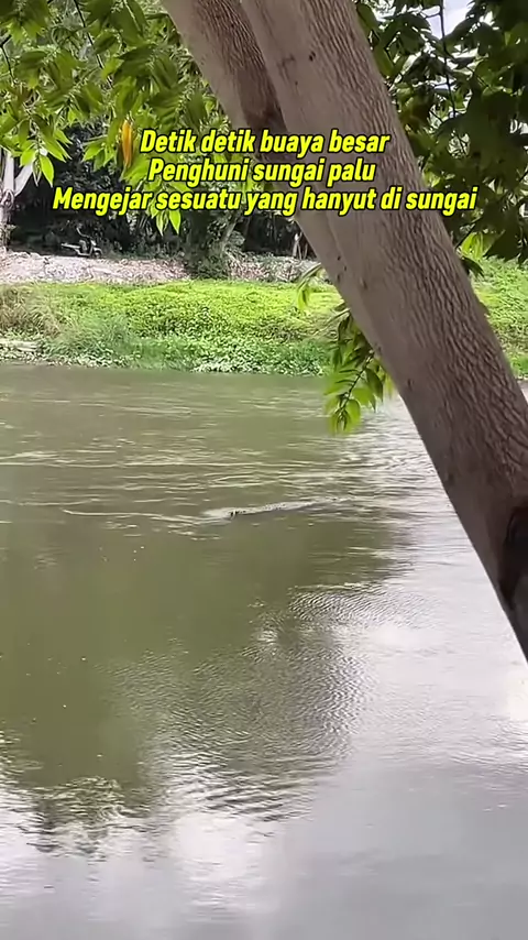 Detik detik seekor buaya besar penghuni sungai jembatan dua kota palu mengejar hewan yang hanyut di aliran sungai.##mnhidayat#buayapalu#buayamuara