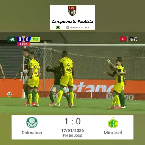CAMPEONATO PAULISTA TEMPORADA 2026 - RODADA 3 17 JAN 2026 PALMEIRAS 1X0 MIRASSOL #kwai #mundodabola #Futebol #viraliza #esporte
