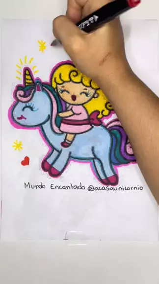 Menina e seu amigo unicórnio fofinho #unicornio #meninas #topz #desenhoanimado #crianças