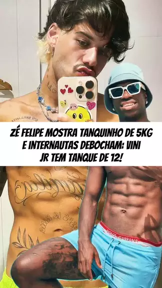 Zé Felipe tirou a camisa, mostrou o abdômen e pronto: virou polêmica! Internautas puxaram Vinícius Jr pra comparação e a zoeira tomou conta. #celebridade #entretenimento #ZéFelipe #ViniciusJr #Polêmica