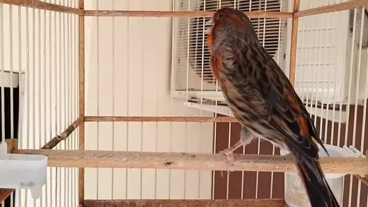 Canário belga cobre soltando o canto.