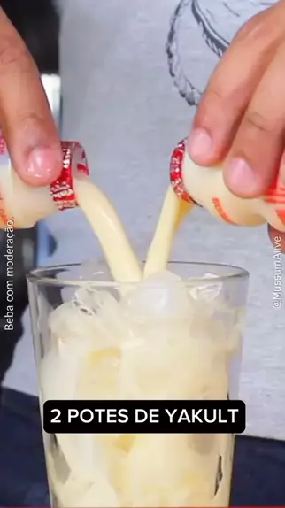 BATIDA DE YAKULT! Tem coragem? Ingredientes - Gelo - 2 potes de Yakult - 100 ml de vodka - 50 ml de leite condensado BEBA COM MODERAÇÃO#drinks #suco #drink #Receita #coquetel