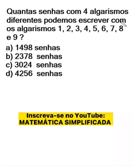 QUESTÃO DE ANÁLISE COMBINATÓRIA #matematica #matematicabasica #matematicasimplificada #aprendanokwai