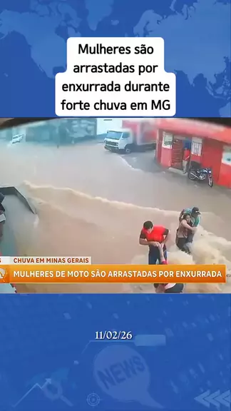 Mulheres são arrastadas por enxurrada durante forte chuva em Minas Gerais. #ultimasnoticias