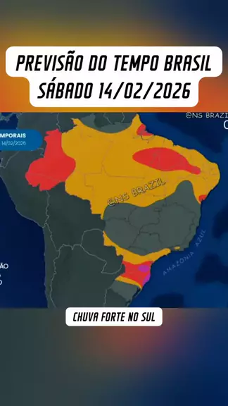 Previsão do tempo no Brasil sábado 14/02/2026, Carnaval com alerta de chuva forte no Sul e calor no Brasil. #ultimasnoticias #PrevisãoDoTempo #Chuva #Carnaval #brasil