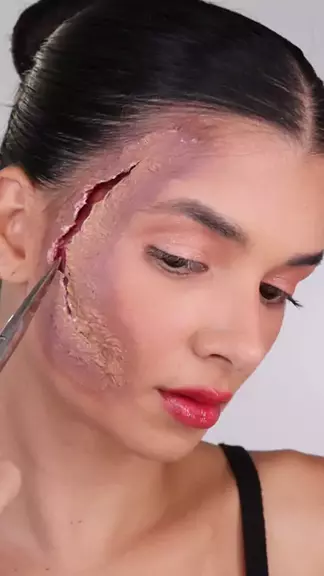Acharam fácil? Esta ferlda usando cola e papel higiênico. ⚠️ferida fake⚠️ . #make #makeup #makefacilhalloween #halloween #makehalloween