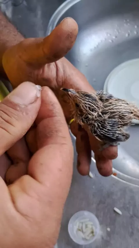 achei esse filhote de anu branco debaixo do cajueiro, só tinha ele.