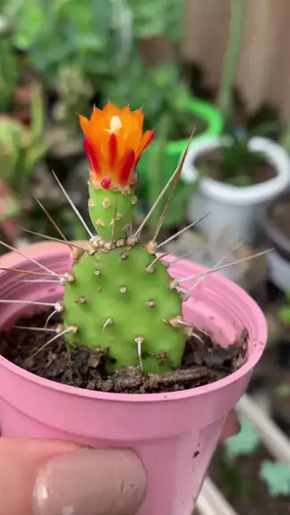#Cacto, Essa parte do cacto caiu, pensei que não iria florescer, encaixei num vasinho pequeno e vejam como ela está!! 🥹🥹🌷🌾