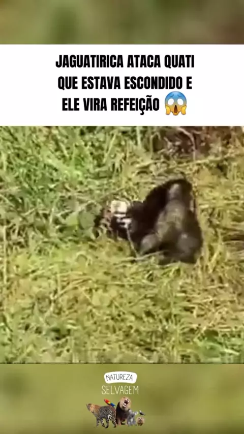 Jaguatirica ataca quati que estava escondido e ele vira refeição #vidaanimal #animal #vidaselvagem #ataque