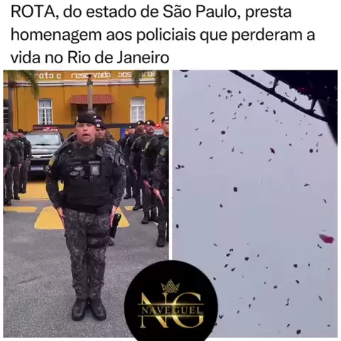 🖤 RECONHECIMENTO E LUTO 🕯️ Momento de grande emoção e união! Policiais da ROTA (Rondas Ostensivas Tobias de Aguiar) prestam uma tocante homenagem aos colegas que perderam a vida em serviço na recente megaoperação no Rio de Janeiro. 😔 É um gesto que demonstra a fraternidade entre as forças de segurança de diferentes estados e o respeito ao sacrifício daqueles que atuam na linha de frente. Deixe seu apoio e respeito nos comentários. 👇 #luto #policia #rota #riodejaneiro #rj