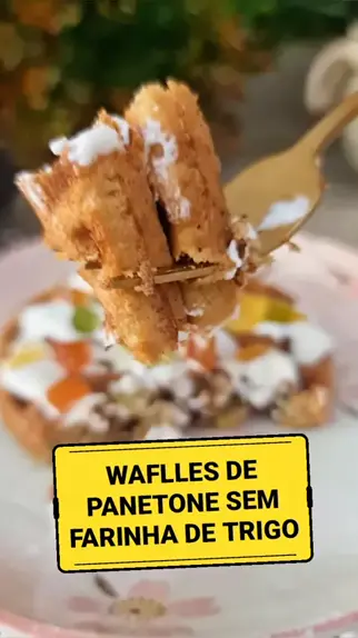 Waffles de Panetone sem farinha de trigo. #receitas #Receita #Natal #Waffles #doce