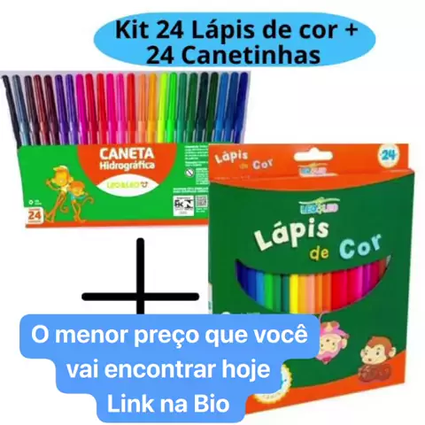 Dê uma olhada em kit Lápis de Cor 24 cores e Caneta Hidrográfica 24 cores Canetinha Leo e Leo por R$28,99. Compre na shoppe. 👉🏻 https://s.shopee.com.br/9KSHaZ3iIZ #promoçao #shoppe #voltaasaulas #viraliza