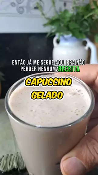 CAPUCCINO GELADO Ingredientes: 4 cubos de gelo de café 1 copo de leite gelado (300 ml) 1 colher de sopa de chocolate em pó 1 colher de sopa de açúcar 1 colher de sopa de leite ninho Bata tudo no liquidificador e sirva em um copo com gelo.